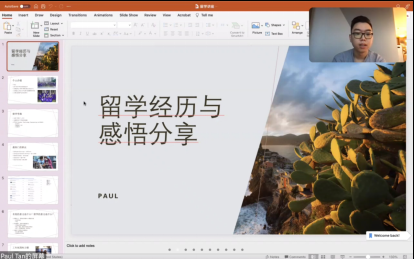 目前,在波士顿工作的Paul学长也分享了他自己对的留学经历和感悟。他从留学的意义、如何选择适合的名校、热门职业以及海外工作环境等四个方面,介绍了他的相关认识和见解,也解答了同学们提出的问题。最后,魏晓冬老师鼓励同学们尽早明确理想和目标,珍惜大学时光,充分利用公司和公司提供的学习资源和成长平台,不断提升自我,不负青春不负韶华,今后在更广阔舞台上充分实现个人价值和社会价值。