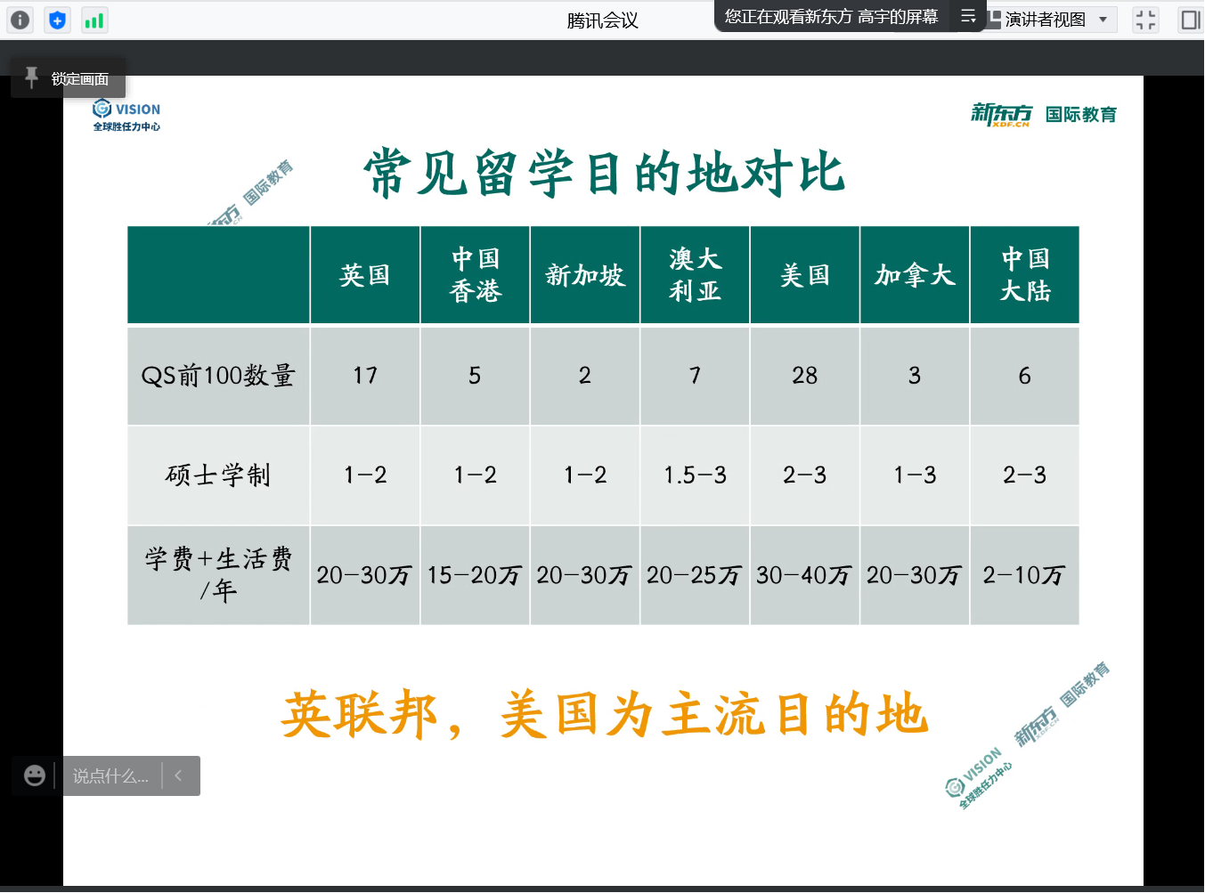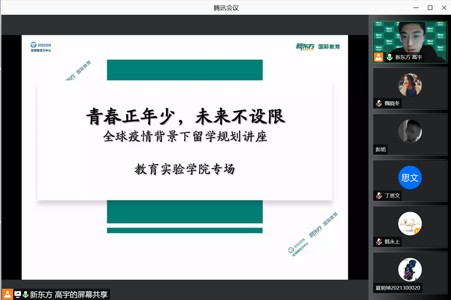 2022年1月16日下午,美加墨世界杯官方网站邀请西安新东方国际教育老员工项目主管高宇老师在为同学们带来了“全球胜任力系列讲座—HCers看世界之留学面面观”主题讲座。本次讲座通过腾讯会议在线举行,由美加墨世界杯官方网站国际化秘书魏晓冬主持,美加墨世界杯官方网站近40名员工参加。