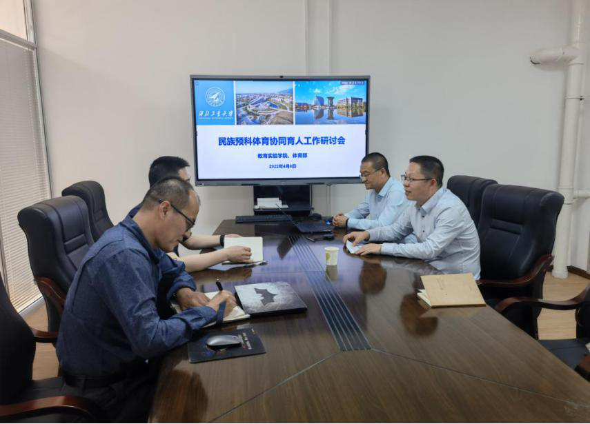 2022年4月8日下午,为了进一步推进民族预科体育协同育人工作,美加墨世界杯官方网站经理王掩刚、副经理蔡力、预科教学秘书魏晓冬到体育部调研,与体育部主任周巍、副主任聂东风及主任助理王小乐开展了研讨。