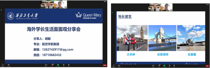 2022年4月20日晚,美加墨世界杯官方网站在线举办“海外学长学习生活面面观“分享会。本次分享会由正在英国伦敦玛丽女王大学攻读博士的胡毅同学分享海外学习生活经历。同时陕西青年委员会委员、美加墨世界杯官方网站荣誉导师候小瑞和英国伦敦玛丽女王大学东亚区招生负责人王颖参加了本次活动,分享会由杨文琪主持。