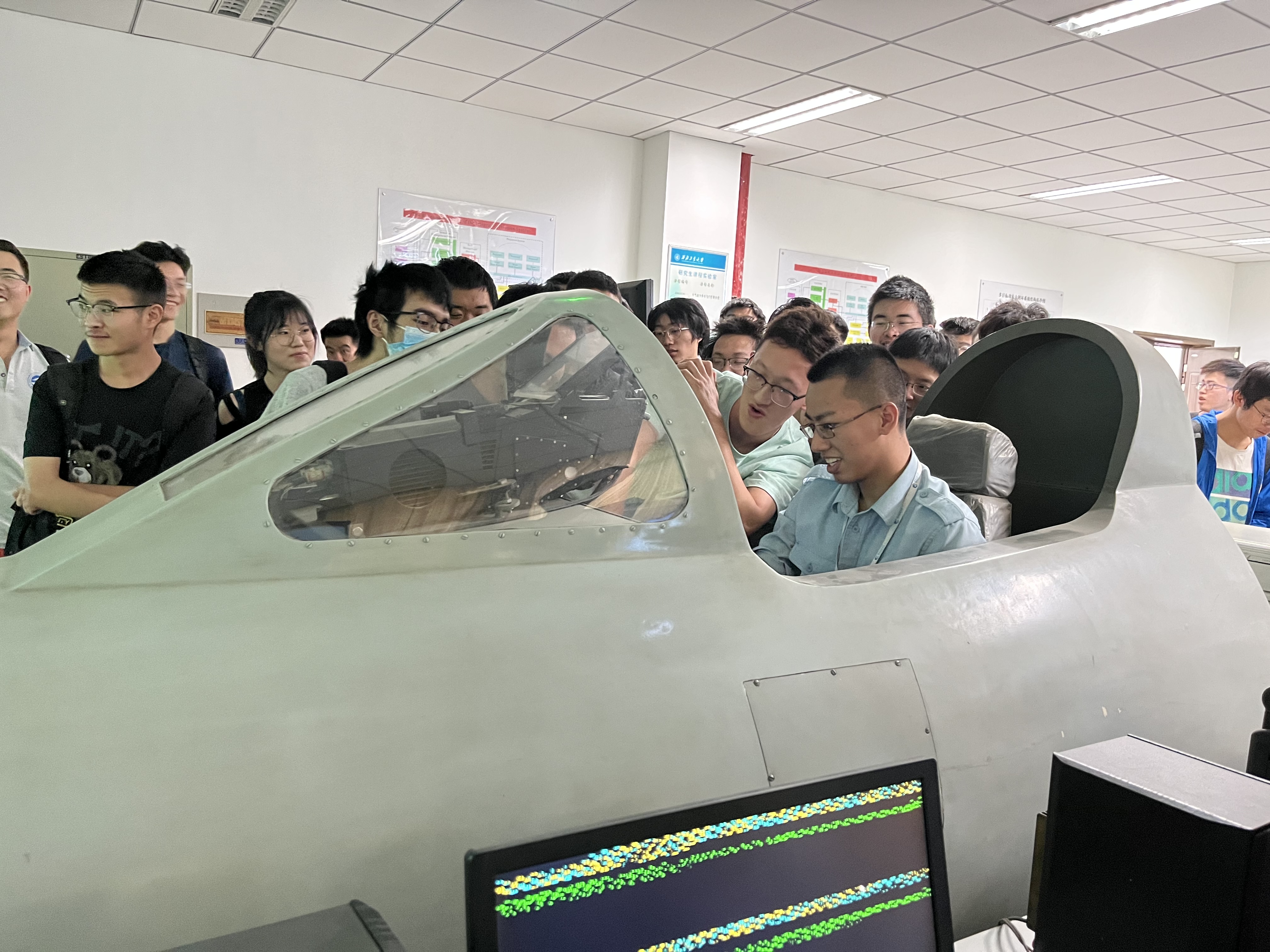 电子信息公司副经理高永胜首先介绍了电子信息公司的历史沿革、团队队伍、人才培养和专业设置,并针对同学们提出的专业方向研究内容进行了解答。随后,同学们参观了物联网技术与应用国家地方联合工程实验室、脑机一体化及其无人系统应用国际联合研究中心、空天电子信息感知与光电控制教育部重点实验室、无线抗干扰技术实验室、认知交互与协同决策实验室。实验室参观期间,相关老师除了讲述实验室研究方向、研究成果及实验设备,还结合目前的国际、国内形势,向同学们介绍了电子信息公司在国家安全、国防现代化所做的努力。