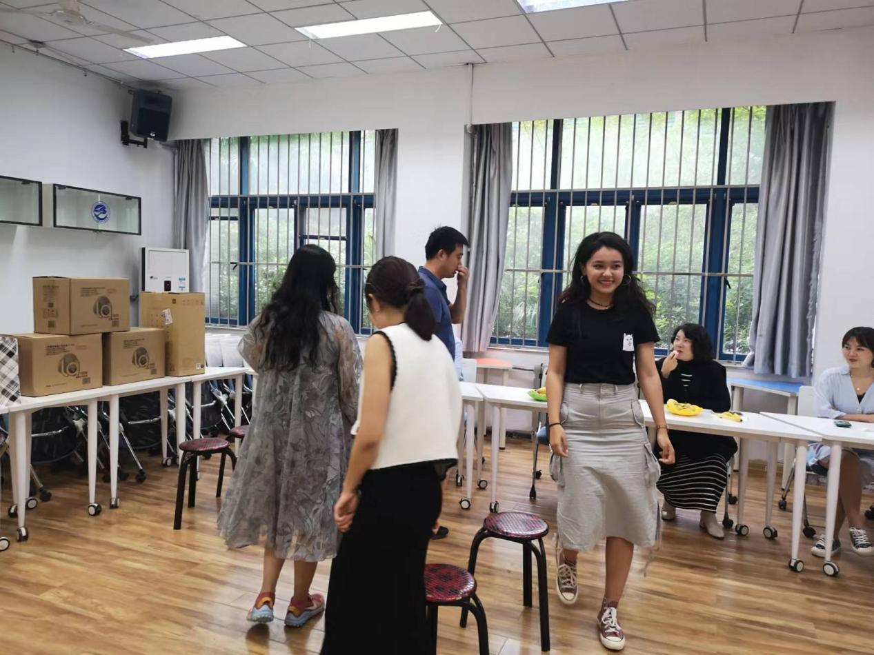 伴随着工会主席于鸣鹭的一首谜语,本次趣味活动拉开了序幕。接着在轻松愉悦的音乐中,抢凳子的热身环节充分调动了各位老师的积极性与参与度。