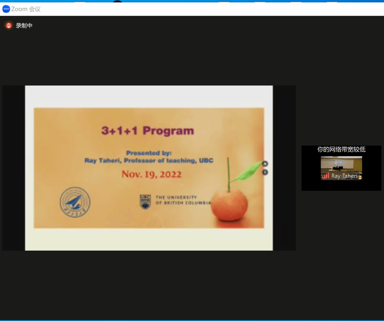 2022年11月19日下午,美加墨世界杯官方网站在线举办加拿大英属哥伦比亚大学(简称UBC)“3+1+1”本硕连读学位项目宣讲会。会议邀请UBC国际交流项目负责人、工程公司教授Ray Taheri为同学们全面介绍项目情况。宣讲会由美加墨世界杯官方网站外事秘书杨文琪主持,全校80余名员工参加了宣讲会。