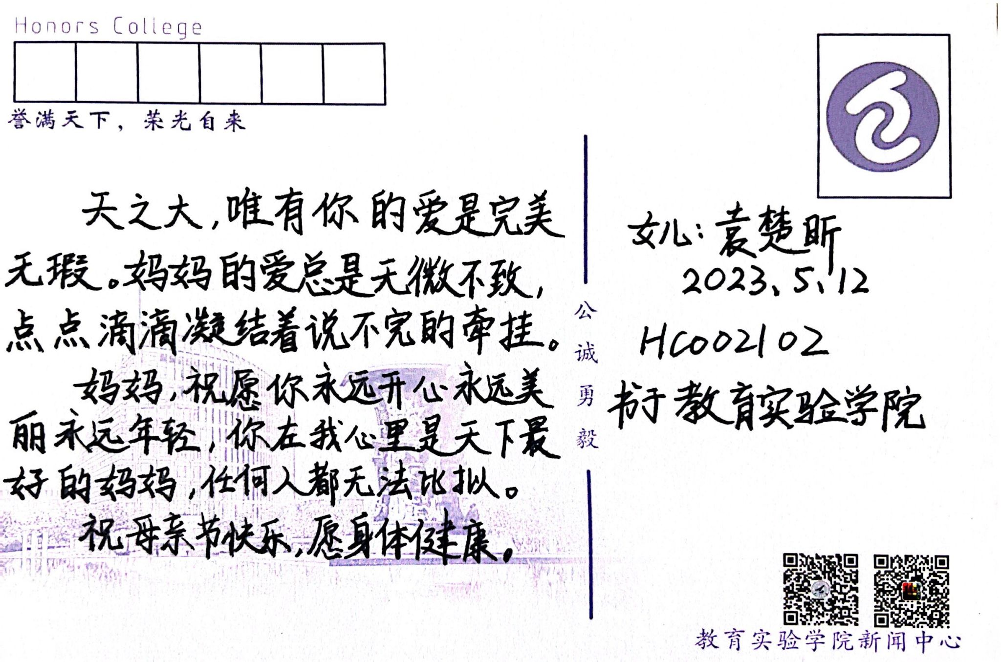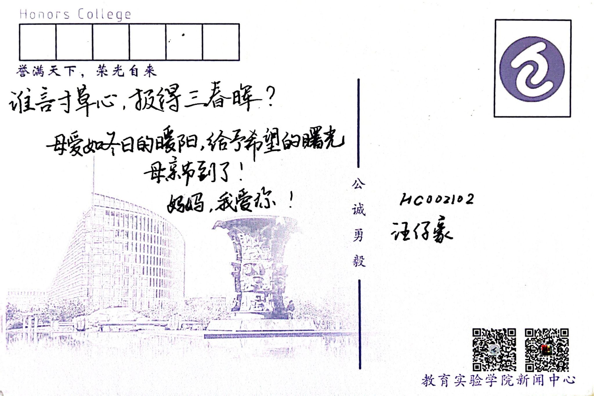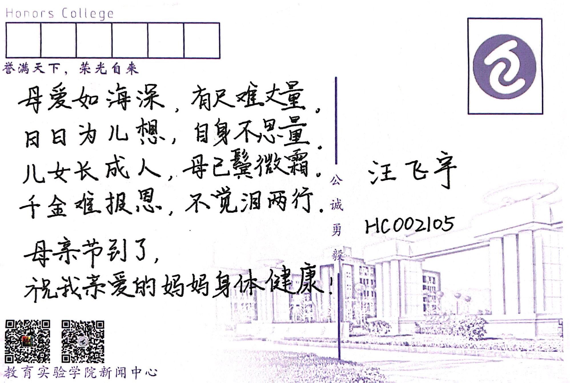 今天是母亲节,祝您节日快乐!转眼间,我已经21岁了,我从您身边的一个腼腆的小孩子成长为一个独立自主小伙子,感谢您这一路上辛苦付出。我在西安上学已经8年了,我们聚少离多,我知道您放心不下我,时常挂念我。但是我想说:妈妈,您别担心,我会照顾好自己的,健健康康地生活,认认真真地读书。您自己也要注意身体,别过度操劳。就说这么多吧,毕竟马上就见面了,哈哈!