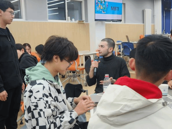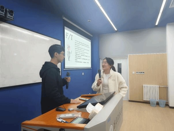 之后,主持人详细地剖析了每个人格类型的四个字母的核心内涵及其代表的人格类型内容,生动地描绘出了十六种人格类型的含义。全体同学在主持人的引导下,共同进行了一场简短的“MBTI”性格测试,同学们在测试的过程中分析了自我人格。在“MBTI”猜谜游戏中,主持人选取了一系列深受大众喜爱的虚拟角色,剖析其性格特征后,让同学们猜测这些角色所对应的“MBTI”人格类型。最后的Free Talk环节将现场气氛推向了新的高潮,同学们围绕“MBTI”及其他感兴趣的话题自由讨论。