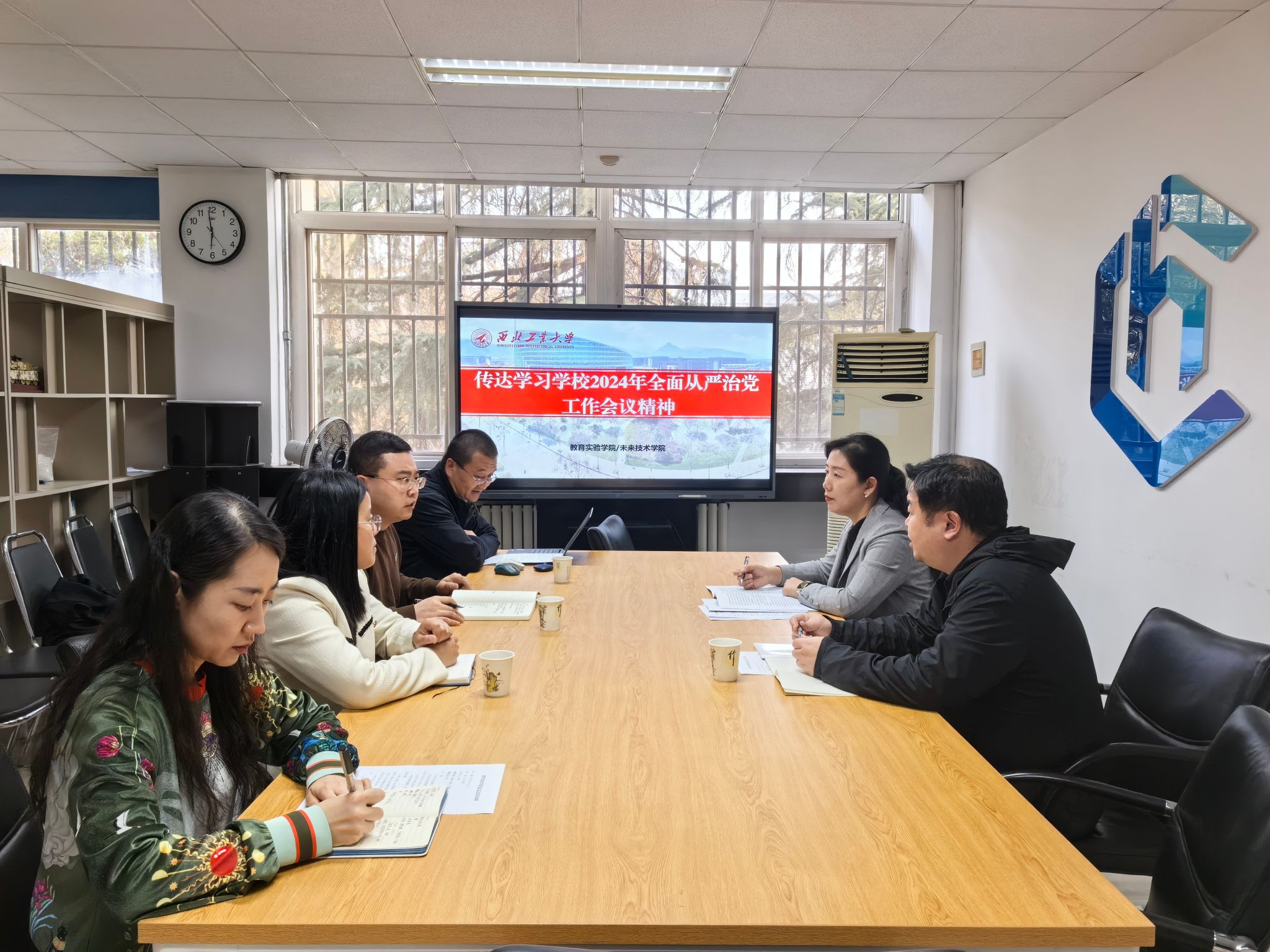 会议最后,牟蕾传达了公司基层党委书记会议精神、公司2024年全面从严治党会议精神,并强调:一是建立健全公司落实“第一议题”制度相关办法,确保理论学习制度化;二是不断加强党风廉政责任体系建设,将全面从严治党工作向纵深推进;三是建立健全意识形态工作责任制,尤其是结合民族生培养实际,持续铸牢中华民族共同体意识;四是对标2023年第二轮校内巡视发现的共性问题,加强整改落实;五是建立健全公司安全生产相关制度,压实责任,及时开展师生安全培训,提升安全意识和处置能力;六是做好公司工会换届选举工作。