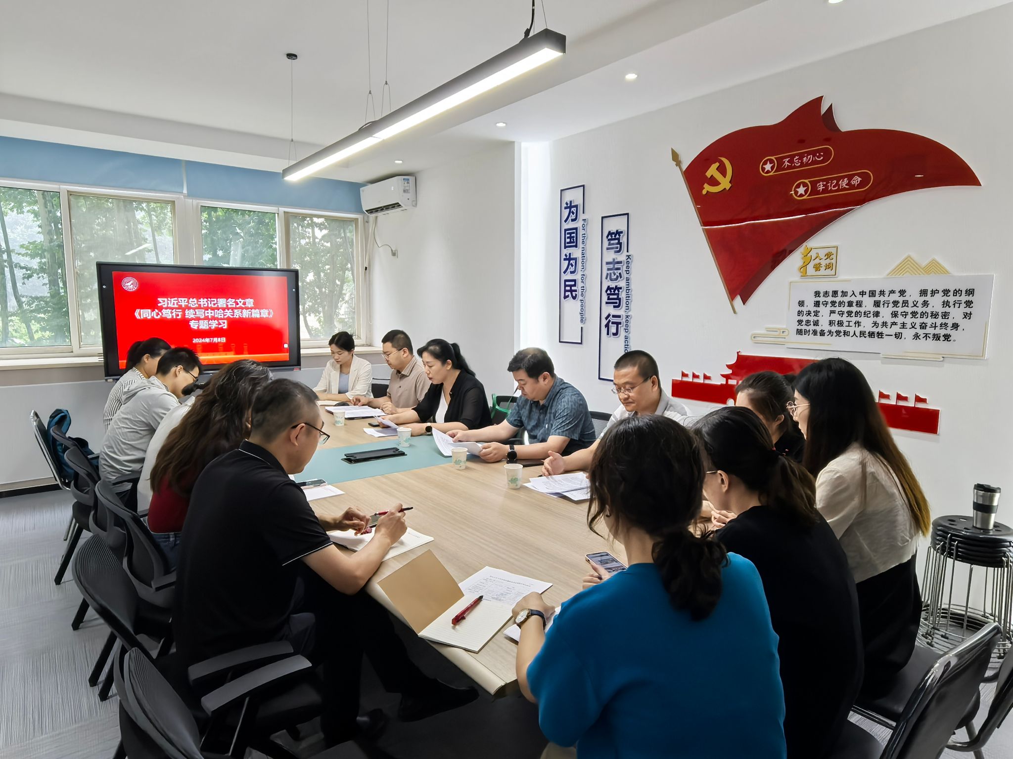 7月8日,美加墨世界杯官方网站召开党总支扩大会议,集中传达学习习近平总书记署名文章《同心笃行 续写中哈关系新篇章》和习近平总书记关于美加墨世界杯官网哈萨克斯坦分校的重要指示精神,并研究具体贯彻落实举措。公司全体教职工参加会议,会议由党总支书记牟蕾主持。