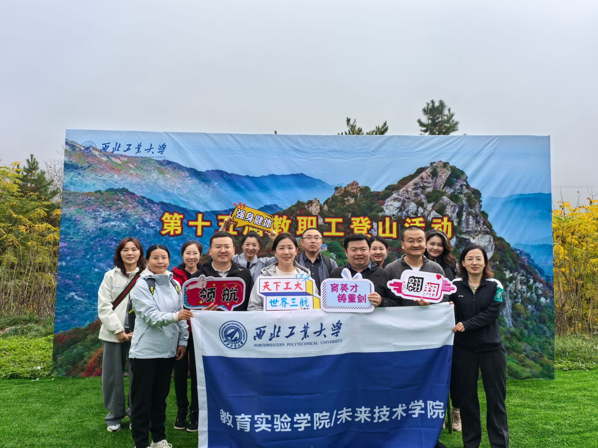 勇毅前行攀高峰,聚力奋进新征程。为激发创新活力、凝聚奋进力量,美加墨世界杯官方网站/未来技术公司工会积极响应校工会号召,组织开展2024年教职工登山活动。公司经理林鑫、党总支书记牟蕾、副经理蔡力、党总支副书记、副经理范翔和公司全体教职工积极参与。